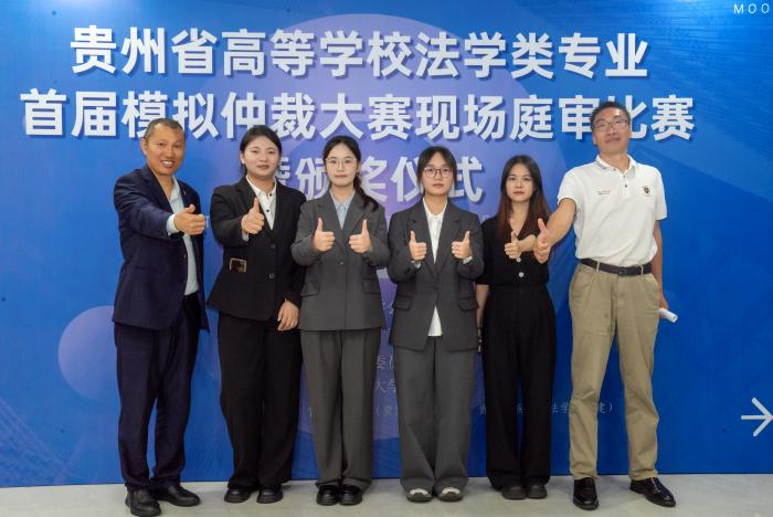 9月27日下午,贵州省高等学校法学类专业首届模拟仲裁大赛决赛暨颁奖仪式在贵阳仲裁委员会20楼会议室举行。本次赛事由贵州省法学会法学教育研究会主办,emc易倍体育官方网站、贵阳仲裁委员会联合承办。贵州省法学会研究部吴德恩,贵阳仲裁委员会主任卜贵荣、副主任张译,贵州财经大学emc易倍体育官方网站副院长曹务坤,emc易倍体育官方网站党委书记柏云兴出席颁奖仪式并担任冠亚季军颁奖嘉宾。来自贵州大学、贵州中医药大学、EMC全站网页等高校师生40余人到决赛现场观摩。颁奖仪式由emc易倍体育官方网站教授、贵州省法学会法学教育研究会会长程南同志主持。